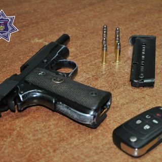 Los oficiales le marcaron el alto a un vehículo color negro, el cual habían reportado como partícipe de robo y en la revisión del auto encontraron debajo del asiento izquierdo, una pistola escuadra calibre .22mm con su cargador abastecido con siete cartuchos útiles.