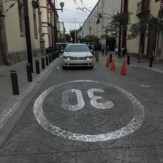 El viernes pasado se inauguraron las obras de rehabilitación conocidas como Zonas 30 del Centro Histórico. En estos polígonos se pone la banqueta a nivel de calle, además de que se tranquiliza el tráfico dando una velocidad máxima de 30 kilómetros por hora. No se permite estacionarse en dichas zonas.