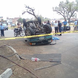 De acuerdo con testigos del percance, una camioneta tipo Ram pudo ser la causante de la volcadura, ya que después del impacto huyó del lugar a toda velocidad.