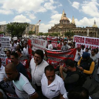GUADALAJARA, JALISCO (07/SEP/2016).- Luego de que esta mañana comenzara el paro en algunas rutas del transporte público, alrededor de 800 choferes y transportistas realizan una manifestación a las afueras del Palacio de Gobierno.