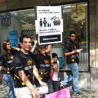Realizan comparación de la canasta básica con el salario mínimo; entregan recibos de compra y productos a las puertas de Palacio de Gobierno