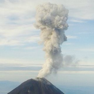 GUADALAJARA, JALISCO (07/AGO/2014).- Una fumarola de aproximadamente mil metros de altura, se pudo apreciar esta mañana de jueves, en el