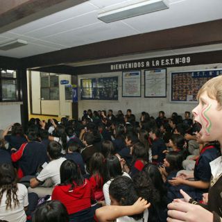 Sentados en el pasillo central de la secundaria, unos 250 alumnos festejaban el primer gol azteca que instantes después sería anulado, pero que aún no ocasionaba que el ánimo se viniera abajo.