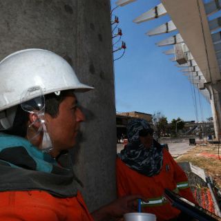 Vázquez explica que a la estructura sobre la que irán los rieles le llaman “ballena”, y las partes que sobresalen y que ellos tienen que soldar son las “costillas”. “Una grúa las coloca pero uno las tiene que reforzar. Si alguna pieza te sale mal te tienes que quedar una o dos horas después del horario para repararla. En 15 días que llevamos hemos avanzado tres pilares”.