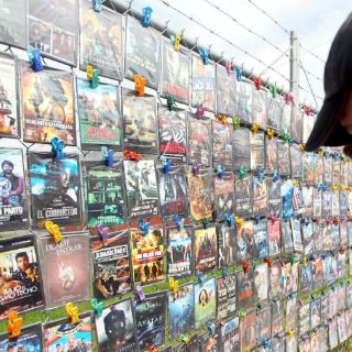 Hay un local que destaca en esa zona. Es una especie de cuarto hecho con varas de metal, que soportan películas por dentro y fuera. El primer letrero que hay a la vista es uno que dice "Películas con mensaje"; abajo hay una serie de filmes que, si el letrero no miente, pues tendrán algún mensaje. Ahí es donde entra el cliente.