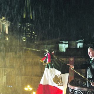 GUADALAJARA, JALISCO (16/SEP/2012).- Sin fuegos pirotécnicos, con una tormenta que no cesó, y una manifestación a los pies de la Plaza de Armas, el gobernador de Jalisco, Emilio González Márquez, dio el Grito de Independencia, el último de su administración.