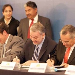GUADALAJARA, JALISCO (27/ENE/2012).- El gobernador Emilio González Márquez, y alcaldes del Área Metropolitana, ante líderes de la sociedad organizada, firmaron finalmente el convenio que crea el Instituto Metropolitano de Planeación, organismo técnico considerado en la Ley de Coordinación Metropolitana estatal.