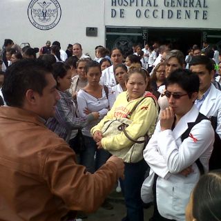 ZAPOPAN, JALISCO (05/JUL/2013).- Alrededor de 100 empleados eventuales del Seguro Popular, de la Secretaría de Salud Jalisco (SSJ) se manifestaron este viernes en la explanada del Hospital General de Occidente (HGO), también conocido como “Zoquipan”.