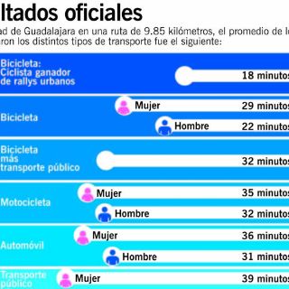 Los dos ciclistas fueron los primeros en llegar al destino, cada uno utilizó rutas distintas. Óscar Ramos, quien avanzó por Hidalgo-Ávila Camacho-ciclovía de Federalismo e Hidalgo, consumió 22 minutos en su pedaleó; mientras Mariel Rivera, quien varió su trayecto circulando por Alcalde en lugar de Federalismo, tardó 29 minutos en llegar a su destino.
