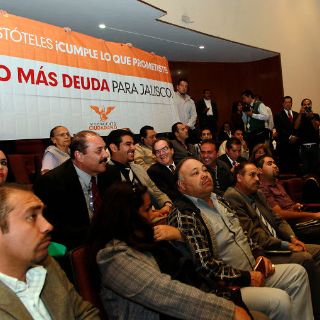 “Hoy, y no el primero de marzo, aquí en el Congreso inicia el sexenio del PRI, inicia el sexenio de Jorge Aristóteles; hoy, con esta decisión del Congreso de Jalisco, de endeudar más a nuestro Estado, se incumple la primer promesa de campaña de Aristóteles Sandoval”, señaló