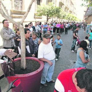 GUADALAJARA, JALISCO (02/ABR/2013).- Los tapatíos madrugaron para pagar el refrendo ayer, en el último día en que podían aprovechar los descuentos de arranque de año. En la recaudadora 000, de Pedro Moreno y Ramón Corona, en el Centro tapatío, los usuarios hicieron largas filas y algunos esperaron hasta 30 minutos. El usuario Jaime Cuéllar aceptó, por ejemplo, que la culpa no fue de quienes laboran en la recaudadora ni del servicio: “Es de nosotros, por dejar todo para el último”. La que también presentó gran afluencia fue la recaudadora 003, en Circunvalación Oblatos y Artesanos; la gente, ahí sí desesperada, tuvo más quejas por la lentitud del servicio.