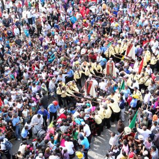 María de Jesús Manzo, madre de familia y ama de casa, es una de las más de 500 mil personas que asistieron a la edición 426 de las fiestas de los Reyes Magos, de Cajititlán, comunidad de Tlajomulco de Zúñiga. Ella está afuera del templo, en el atrio, y dentro de las líneas de las sogas. Ahí espera junto con su hija de tres años, Jennifer Guadalupe Marín, la salida de las esculturas para inclinarse y tratar de tocar, mientras pasan por su cabeza, la base o la capa de una de las tres figuras.