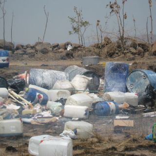 Elementos de la Dirección de Seguridad Pública Municipal, como policías del Estado recibieron el reporte sobre una gran cantidad de tambos, tinas y productos químicos tirados en un predio conocido como Potrero el Zalate, este ubicado a espaldas de la colonia La Cofradía.