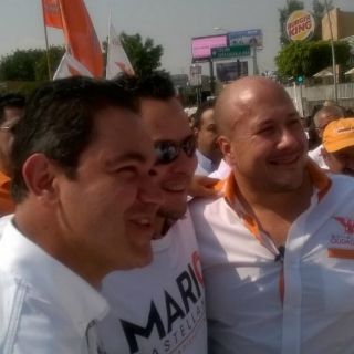 GUADALAJARA, JALISCO (11/ABR/2015).- El candidato de Movimiento Ciudadano a la Presidencia Municipal de Guadalajara, Enrique Alfaro, realizó esta mañana en la Glorieta Minerva su primera pega de calcas de la campaña, donde estuvo acompañado de cerca de 200 simpatizantes.