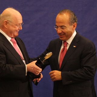 Felipe Calderón Hinojosa encabezó el acto de la entrega de la 30 Medalla al Mérito Industrial de Jalisco al empresario Juan Beckmann, que se llevó a cabo en esta ciudad en la Expo Guadalajara.