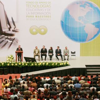 (SNTE), Elba Esther Gordillo Morales, cuya participación en la ceremonia estaba confirmada hasta anoche, este medio día, cinco mil docentes recibieron una computadora portátil proveniente del Fondo de Apoyo de Tecnologías Educativas y de la Información para Maestros de Educación Básica.