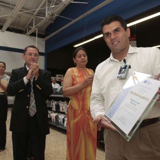 GUADALAJARA, JALISCO (05/AGO/2010).- Por sumarse a la campaña de intensificación contra el virus del dengue, una conocida cadena de autoservicios (Aurrerá y Wal-Mart), recibió hoy un reconocimiento por parte de la Secretaría de Salud Jalisco (SSJ), de manos del director de Salud Pública, Mario Márquez Amezcua.