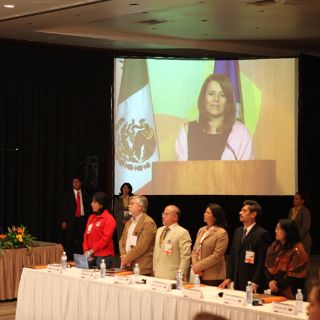 Así concluye la XII Reunión del Grupo de Expertos en la Reducción de la Demanda de Drogas en Guadalajara, con la visita de la primera dama Margarita Zavala (en la pantalla).