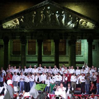 GUADALAJARA, JALISCO (28/JUN/2012).- A pesar de lo que acusó como “guerra sucia”, y aunque hay “algunos que no quieren que Jalisco amanezca, desde aquí les digo que ese cambio ya nadie lo para”, subrayó Aristóteles Sandoval en la Plaza de la Liberación, anoche, en su último evento de campaña, acto al que también asistieron los candidatos a la alcaldía de Guadalajara, Ramiro Hernández García, y los aspirantes del partido tricolor al Senado y a diputaciones locales y federales.