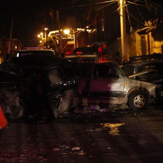 TONALÁ, JALISCO (20/DIC/2013).- Un choque de frente entre dos camionetas provocaron la muerte de un joven y que una familia resultara lesionada, en calles del municipio de Tonalá. Ambos automotores quedaron destruidos.