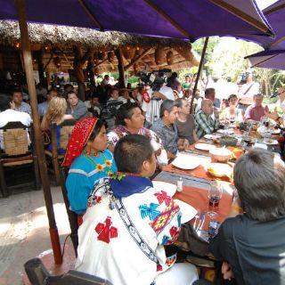 Entre los asistentes estaban los integrantes del colectivo Sector Reforma, Efraín Franco, Moisés Orozco, Humberto Baca, Yosi Lugo y artesanos wixaritari y nahuas.