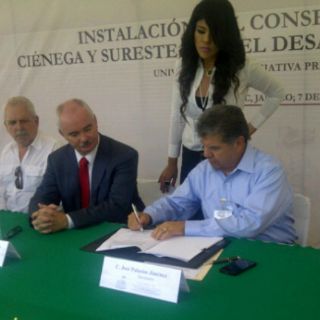 JOCOTEPEC, JALISCO (07/JUN/2013).- Triple cooperación. El secretario de Desarrollo Económico del Estado, José Palacios, acudió al municipio de Jocotepec para firmar un acuerdo entre la región Ciénega y la del Sureste, las cuales agrupan a 23 municipios. El convenio consiste en acercar a los ayuntamientos con los empresarios y las universidades, para lograr potenciar la productividad según el fuerte de cada zona.