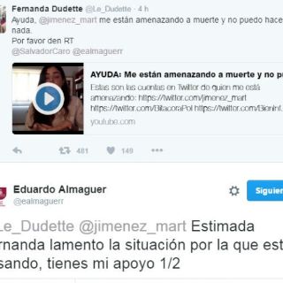 Con esa queja principal, Fernanda comenzó a publicar quejas y a solicitar ayuda en sus redes sociales, y finalmente esta tarde el fiscal respondió por Twitter con dos mensajes: "Lamento la situación por la que estás pasando, tienes mi apoyo; he instruido a personal de @FiscaliaJal para investigar las agresiones y amenazas que has recibido".