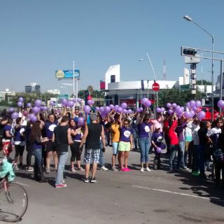 Vestidos con playeras moradas que tenían impresos mensajes en rechazo al acoso, alrededor de 50 participantes, hombres y mujeres, formaron un listón humano portando globos del mismo color. Estas acciones se realizaron en conmemoración del Día Internacional de la Eliminación de la Violencia contra la Mujer, cuya fecha oficial fue el pasado 25 de noviembre.