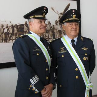 GUADALAJARA, JALISCO (02/DIC/2014).- Tras más de 48 años de servicio, dos generales del Colegio del Aire recibieron un homenaje y condecoración de retiro la mañana de este martes 2 de diciembre en las instalaciones de la Base Aérea