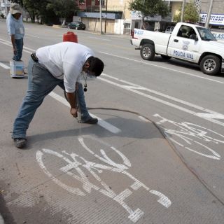 GUADALAJARA, JALISCO (14/AGO/2011).- La amenaza se cumplió. Después de la guerra de declaraciones entre el secretario de Vialidad, Diego Monraz, y el alcalde de Guadalajara, Aristóteles Sandoval, por la inauguración de una ciclovía en la Avenida Circunvalación Agustín Yáñez por parte de la dependencia estatal, trabajadores municipales iniciaron ayer los trabajos para borrar el balizamiento en dicha arteria, entre la calle Aurelio Aceves y Avenida Los Arcos.