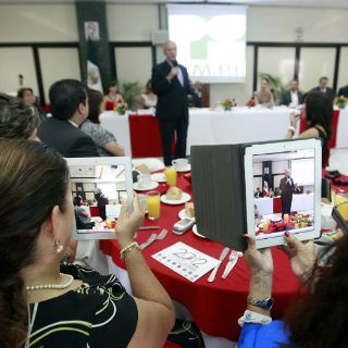 El abanderado azul desayunó con los miembros de la Asociación Mexicana de Profesionales Inmobiliarios de Guadalajara A.C, a quienes les presentó su proyecto de gobierno