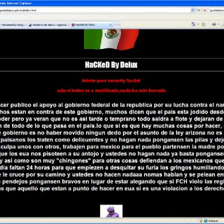 A unos días de que sea aprobada la Ley Antiinmigrantes de Arizona, el hacker denominado "Delux" manifiesta su crítica en contra del gobierno federal por su falta de acciones para evitar que esta ley se apruebe: