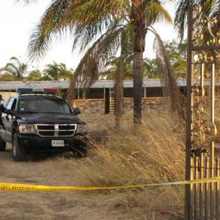 El hallazgo se dio en un lugar agreste, ubicado a un costado de la avenida Adolf B. Horn, a un par de kilómetros del fraccionamiento Arvento, donde se ve una flecha a la derecha que dirige a un sitio llamado El Sendero --que se presume es el nombre del rancho--. Tras 200 metros de brecha se llega al lugar, una finca naranja llena de maleza y rodeada de palmeras moribundas.