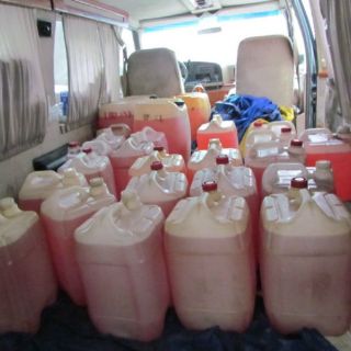 Elementos de la corporación acudieron a verificar y se encontraron en una cochera una camioneta Ford tipo van en el interior del lugar; solicitaron a los dueños de la finca revisar y encontraron 56 bidones con una capacidad de entre 20 y 40 litros; en los cálculos de las autoridades, había alrededor de mil litros almacenados.