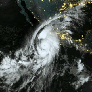En el transcurso de la próxima hora continuará su internamiento en el sur de Jalisco, con vientos máximos sostenidos de 305 kilómetros por hora y rachas de hasta 380, con un desplazamiento al nor-noreste a 22 kilómetros por hora.