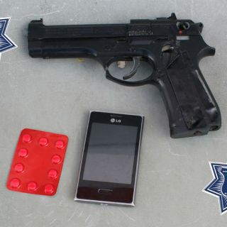 Sin embargo, los oficiales lo alcanzaron y lo sometieron a una revisión preventiva en la que se le encontró en la bolsa derecha delantera del pantalón, una pistola de juguete, semejante a una del calibre .9mm.