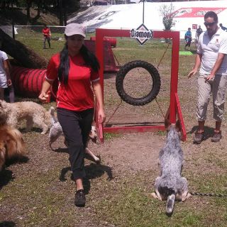 GUADALAJARA, JALISCO (13/JUL/2014).- Spike llegó para saltar. Una a una brincaba cada prueba que le ponía su amo. Traía una fiesta en sus patas y no paraba de brincar. Fue uno de los canes que este domingo estrenaron el tercer parque dedicado a las