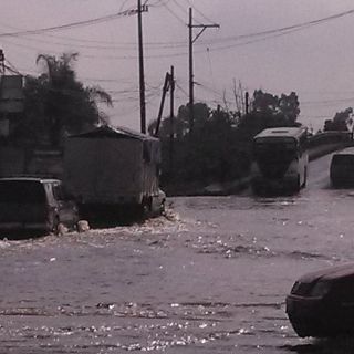 inundado el cruce de las calles Adolf Horn y 1 de Mayo, en el municipio de Tlajomulco, a consecuencia del desbordamiento del canal de Las Pintas, en el lado de Tlaquepaque.