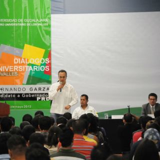 GUADALAJARA, JALISCO (11/MAY/2012).- Ante estudiantes del Centro Universitario de los Valles (CuValles), el abanderado del Sol Azteca a la gubernatura de Jalisco, Fernando Garza Martínez, garantizó que la inversión en el tema educación será una prioridad y en el caso de la universidad "no se escatimarán recursos".