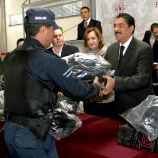 GUADALAJARA, JALISCO (03/DIC/2013).- El Ayuntamiento de Guadalajara comenzó con la distribución de los tres mil tres uniformes que adquirió para los elementos de la Secretaría de Seguridad Ciudadana, y que en esta ocasión son entregados directamente por el presidente municipal,