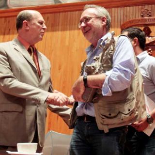 GUADALAJARA, JALISCO (12/JUL/2011).- La estatuilla “Corazón de León” fue entregada esta tarde al poeta y activista Javier Sicilia, reconocimiento que destaca sus acciones en contra de la ola de violencia propiciada por la lucha contra el crimen organizado a lo largo del país.