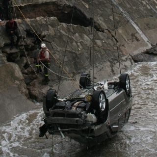 Por la fuerza de la corriente, el vehículo fue arrastrado cerca de 200 metros, hasta que cayó en una represa que se localiza después de Avenida Federalismo, a un costado del Mercado de Atemajac, en donde finalmente fue localizado, con los dos cadáveres en el interior.