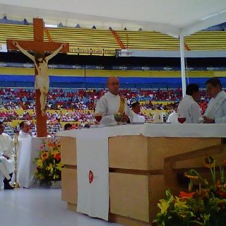 Sin embargo, a pesar de la lluvia los jóvenes no se ahuyentaron y contrario a ello, llegada las 15:00 horas ingresaron al estadio para participar en la celebración de la Eucarística con la cual se efectuaría la clausura de estos tres días de trabajo.