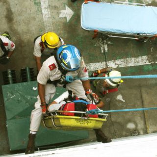 Para ponerlos en la ambulancia fue necesario habilitar un sistema de cuerdas de rescate para descenderlos en camilla adecuadamente con el menor daño posible dadas las afectaciones en su cuerpo.