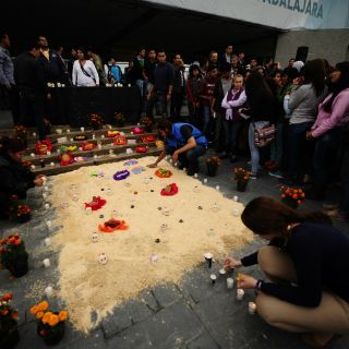 En la explanada del inmueble se colocó un altar que se dedicó a los muertos de Jalisco y de México y, particularmente, a Ricardo de Jesús Esparza Villegas, estudiante del Centro Universitario de los Lagos ( CULagos) que fue encontrado muerto el pasado 18 de octubre en el patio de una casa de la ciudad de Guanajuato.