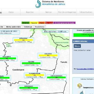 GUADALAJARA, JALISCO (12/JUN/2012).- Con el objetivo de dar respuesta a las necesidades de contar con un instrumento que muestre a la población los niveles en la calidad del aire en la Zona Metropolitana de Guadalajara (ZMG), de manera preventiva, la Secretaría de Medio Ambiente para el Desarrollo Sustentable (Semades) pone en marcha el portal del Sistema de Monitoreo Atmosférico de Jalisco (Simaj).