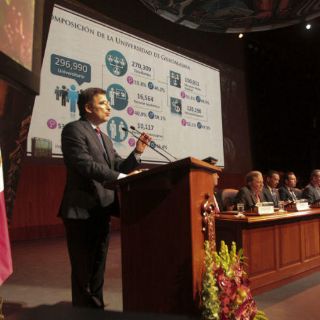 GUADALAJARA, JALISCO (21/FEB/2017).- Durante el Informe de Actividades 2016, el rector de la Universidad de Guadalajara (UdeG), Itzcóatl Tonatiuh Bravo Padilla, destacó que analizarán la puesta en marcha de un programa emergente de apoyo a estudiantes migrantes, con el objetivo de hacer frente a las políticas de expulsión implementadas por el actual Presidente de Estados Unidos, Donald Trump.