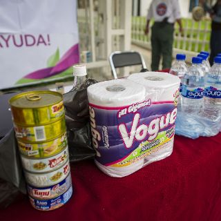 Víveres: agua embotellada, azúcar, café soluble, atún o sardinas, frijoles enlatados, sopas de pasta y leche en polvo.