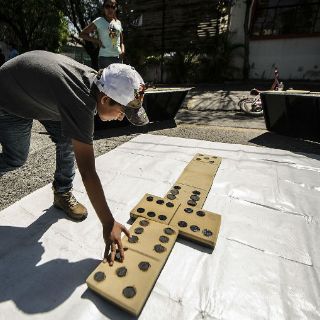 Además del paseo en bicicleta y la caminata, se instalaron tres juegos grandes: ajedrez, palos chinos y el dominó gigante