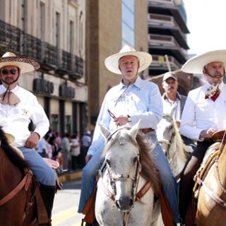 GUADALAJARA, JALISCO (06/SEP/2010).- Una singular cabalgata, en la que participaron charros y políticos, arribó ayer durante la mañana al Centro Histórico de Guadalajara. El objetivo del acto era la recepción del fuego que salió de Dolores, Hidalgo, y que se distribuirá por todos los puntos del país como parte de los festejos del Bicentenario de la Independencia de México.